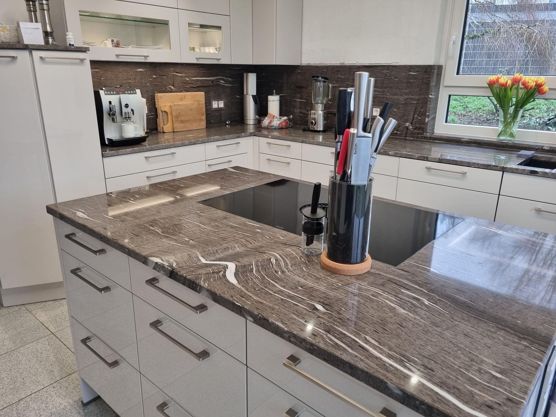Naturstein überzeugt durch seine natürliche Ausstrahlung, Robustheit und Hitzebeständigkeit. Besonders Granit und Quarzkomposit sind pflegeleicht und ideal für den täglichen Einsatz in der Küche geeignet.