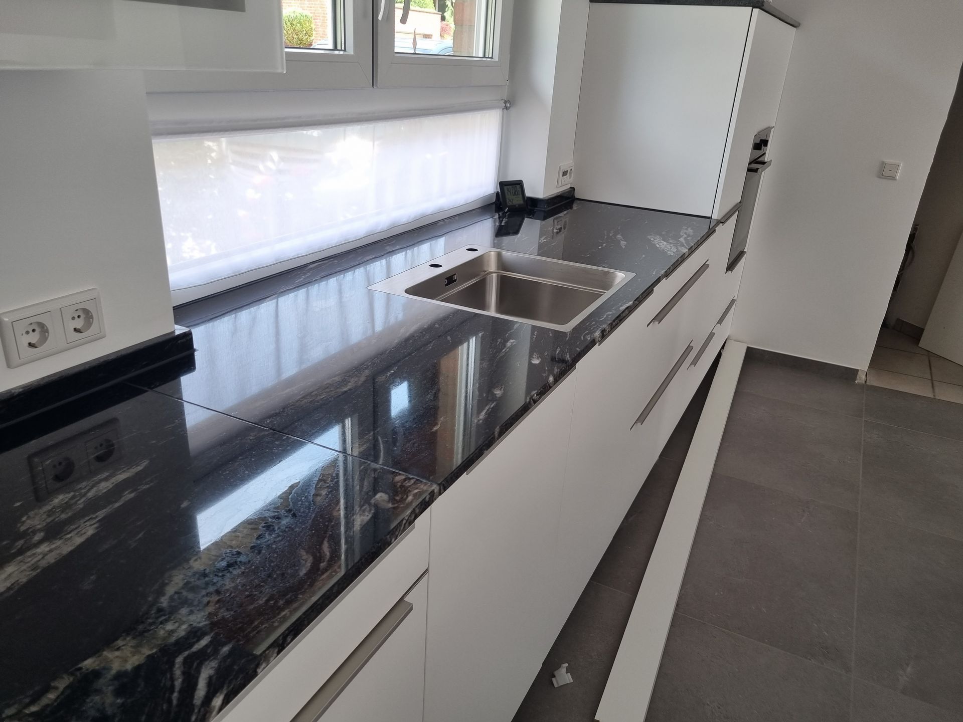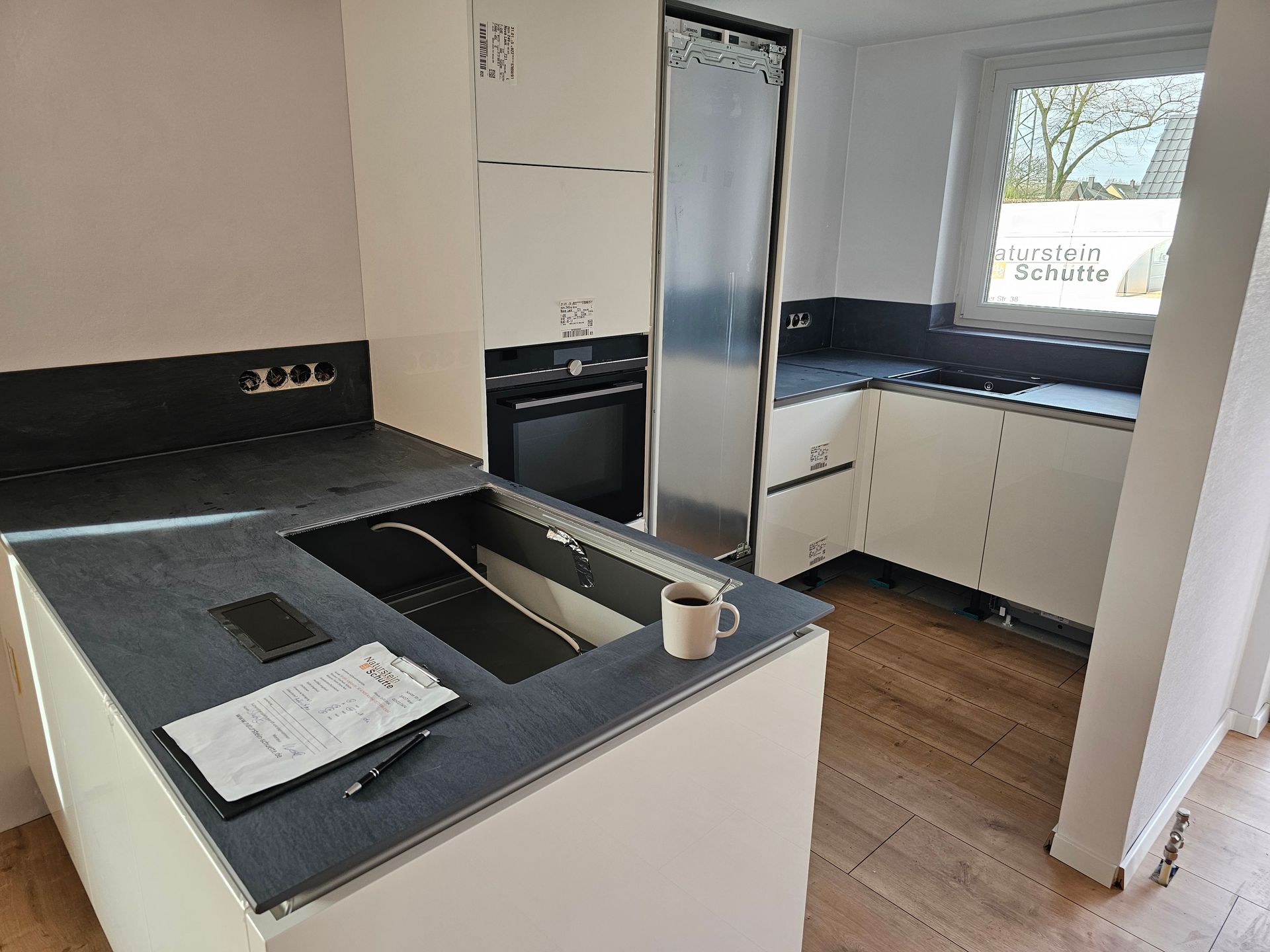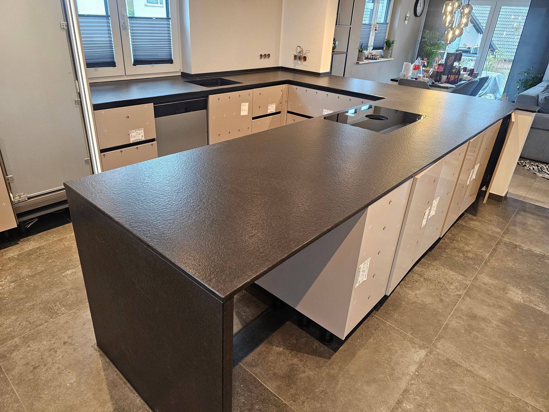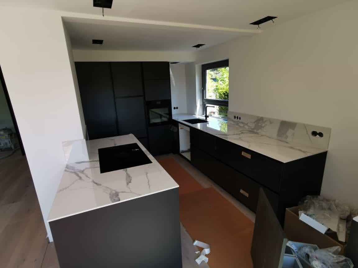 Sämtliche gezeigten Küchenarbeitsplatten stammen aus unserer eigenen Produktion und präsentieren die Küchen in den meisten Fällen vor den abschließenden Arbeiten der Küchenmonteure. Daher kann es sein, dass noch das ein oder andere Detail fehlt. Trotzdem sind die Bilder authentisch und nicht gestellt, was Ihnen einen realistischen Einblick in unsere hochwertigen Arbeitsplatten verschafft.