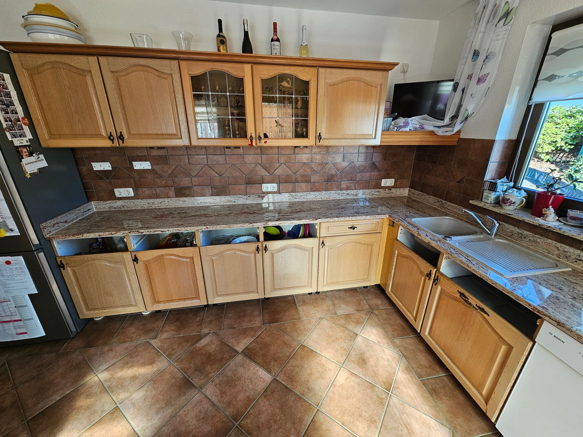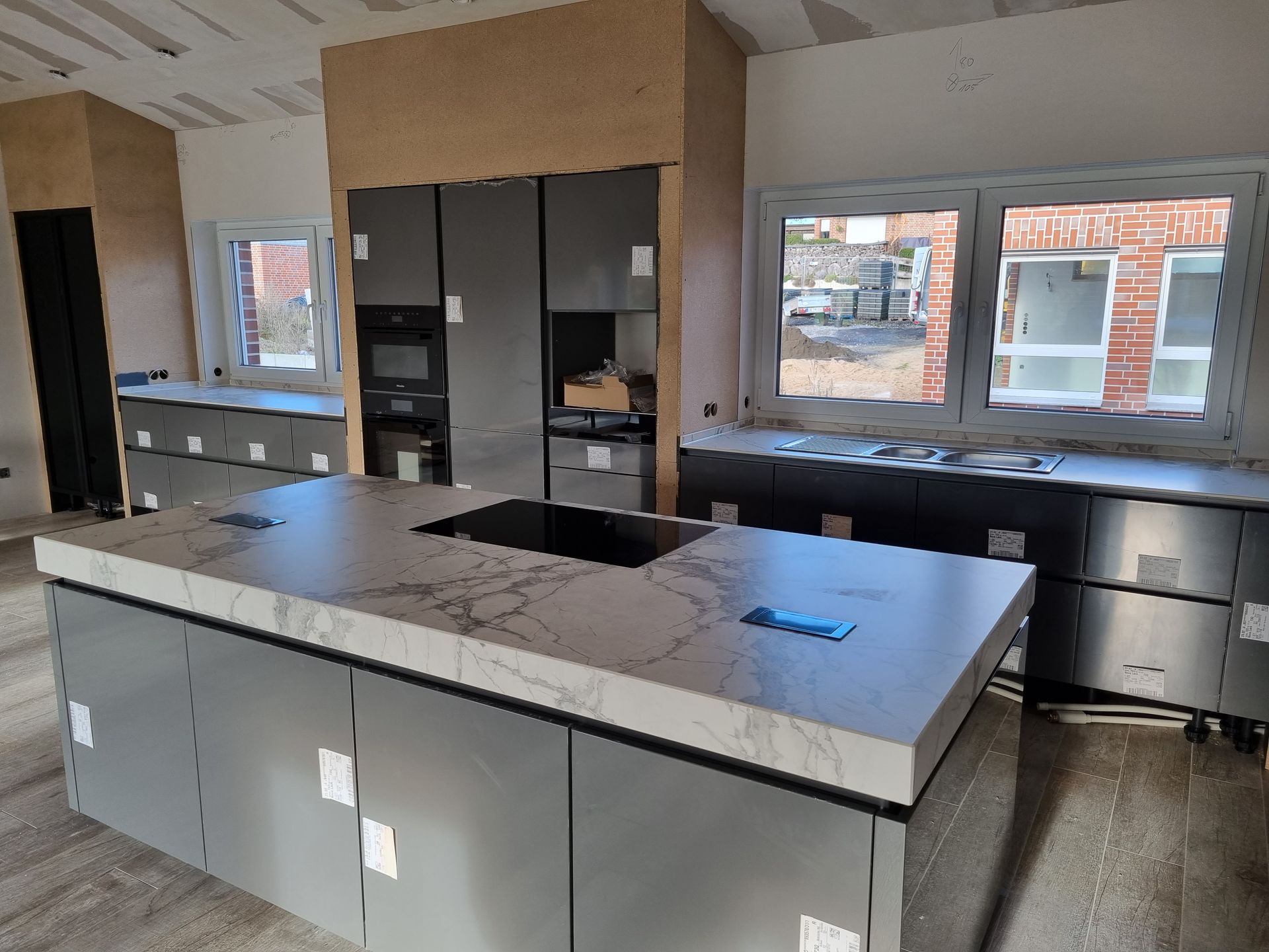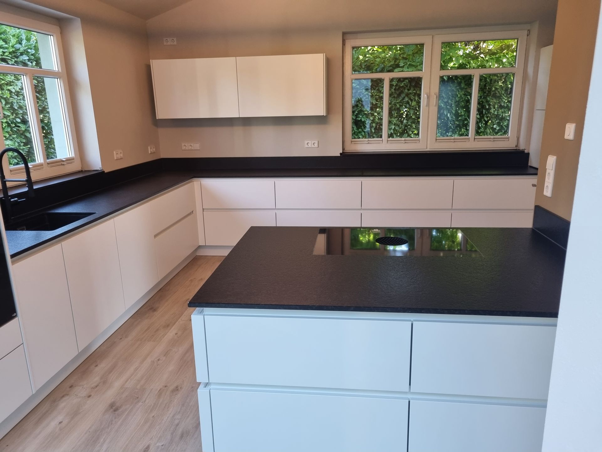 Sämtliche gezeigten Küchenarbeitsplatten stammen aus unserer eigenen Produktion und präsentieren die Küchen in den meisten Fällen vor den abschließenden Arbeiten der Küchenmonteure. Daher kann es sein, dass noch das ein oder andere Detail fehlt. Trotzdem sind die Bilder authentisch und nicht gestellt, was Ihnen einen realistischen Einblick in unsere hochwertigen Arbeitsplatten verschafft.